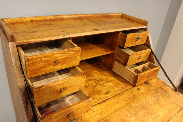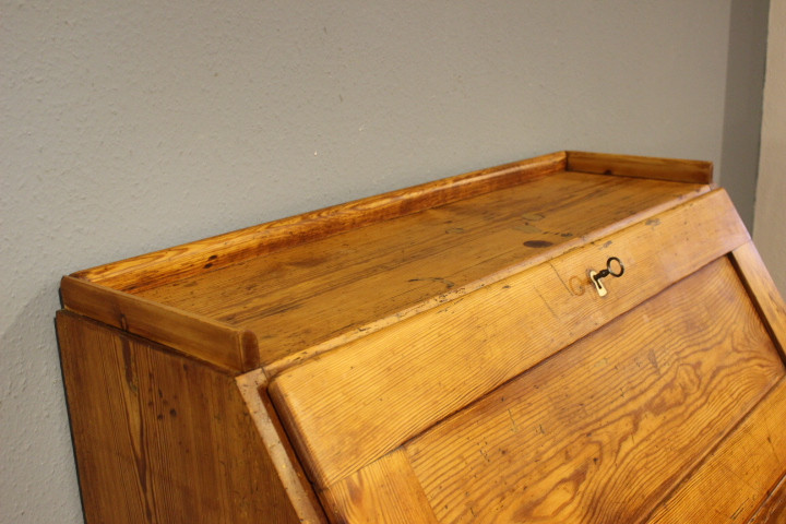 Schrägklappensekretär aus Kiefer in sehr urigem Erhaltungszustand