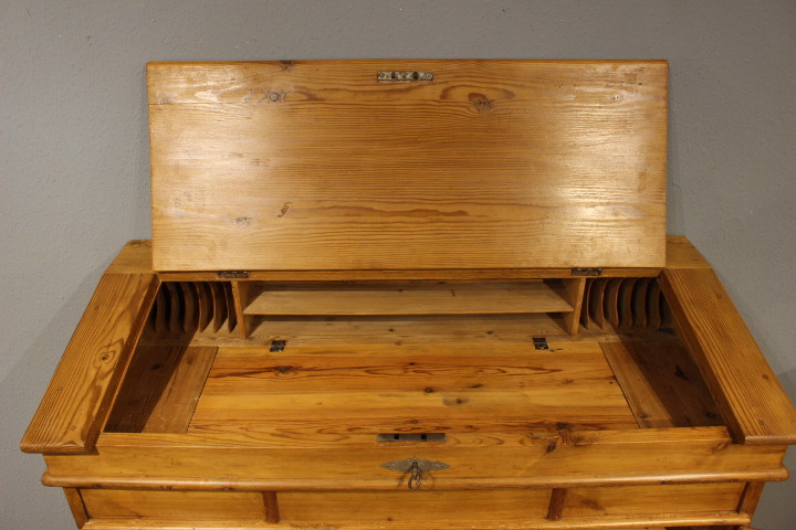 Stehpult mit vielen Funktionen als komplettes Büro , sehr aufwendiger Entwurf. Originalzustand