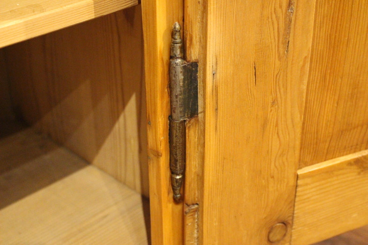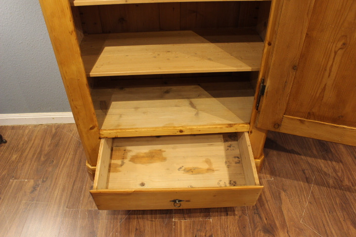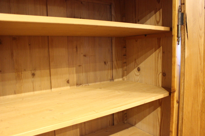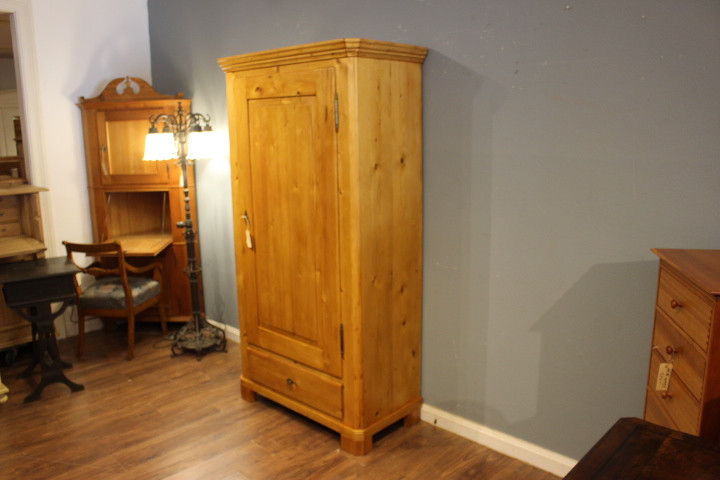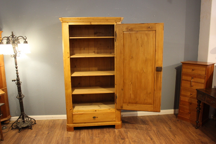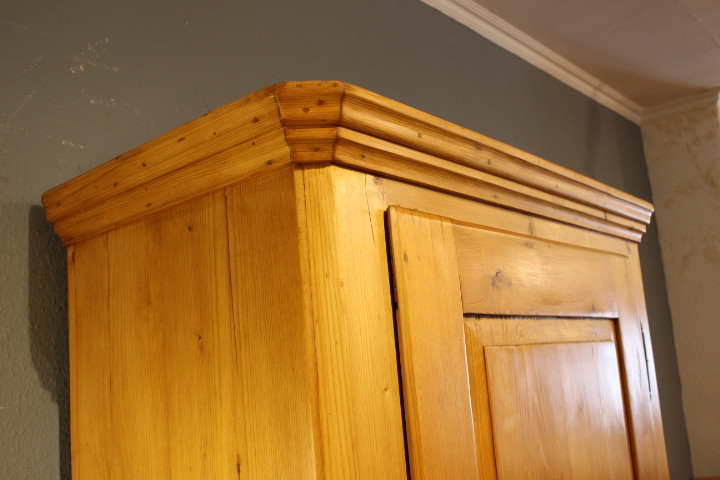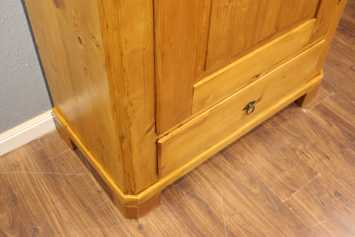 Schlichter Schrank aus der Zeit des Biedermeiers, Kiefernholzschrank mit bäuerlicher Ausstrahlung.