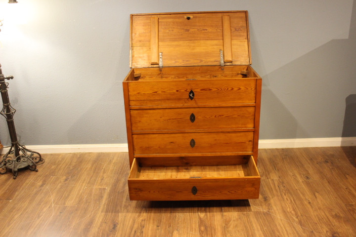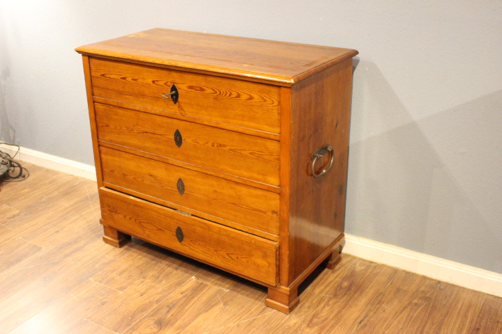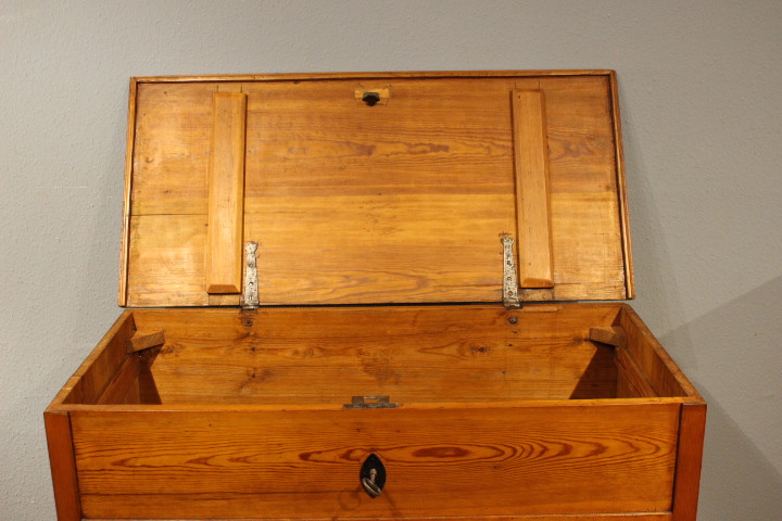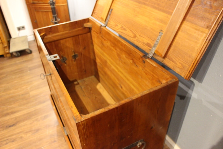 Seltene original erhaltene Truhe, die bei Feuer schnell aus dem Haus geschafft werden konnte.