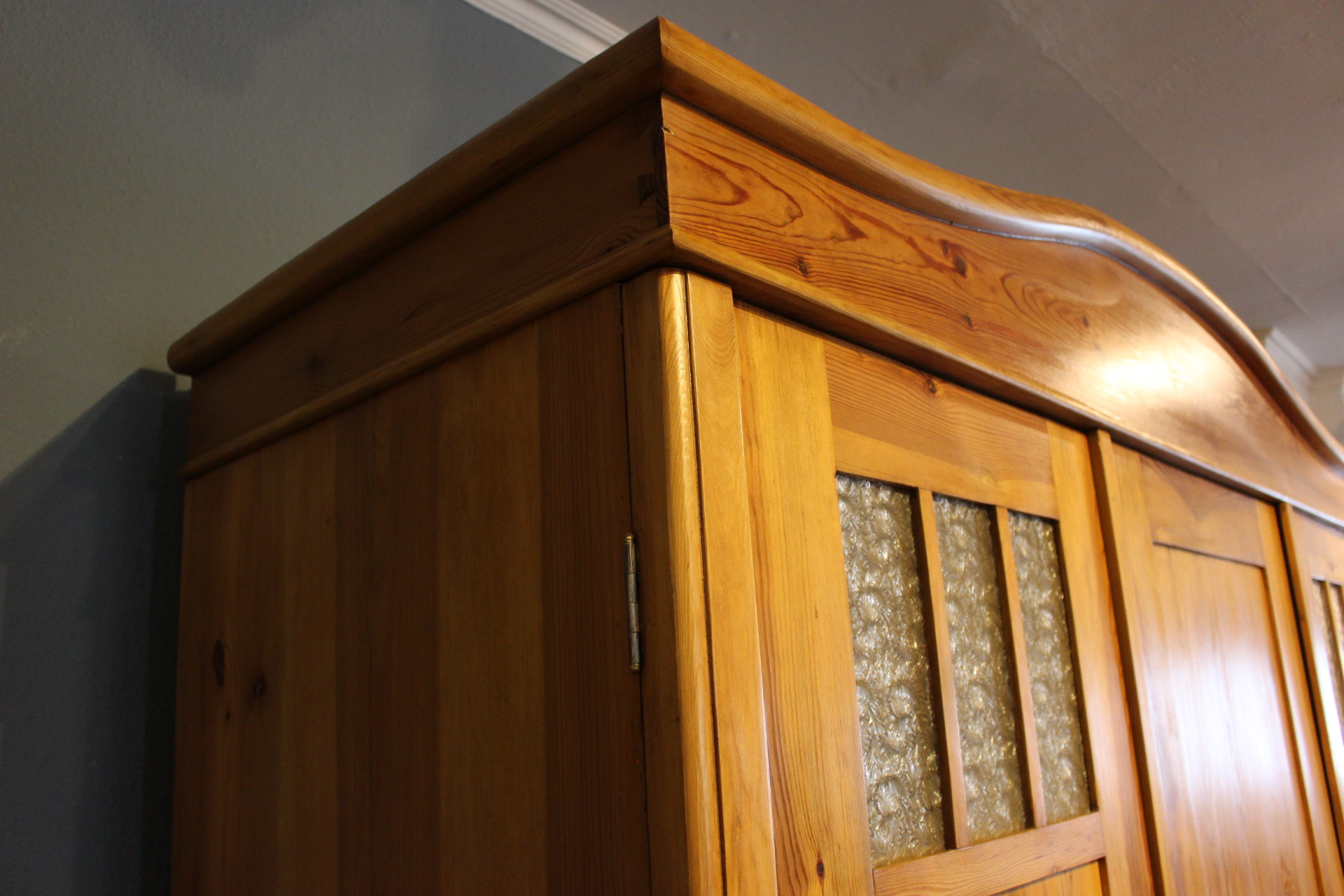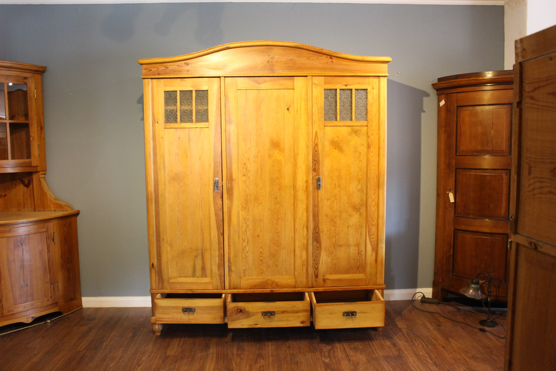 Zur Zeit reserviert Nau Großer Kleiderschrank, Dreitürig, Jugendstil,zerlegbar,Kiefer mit Schellack-Wachs-Politur.