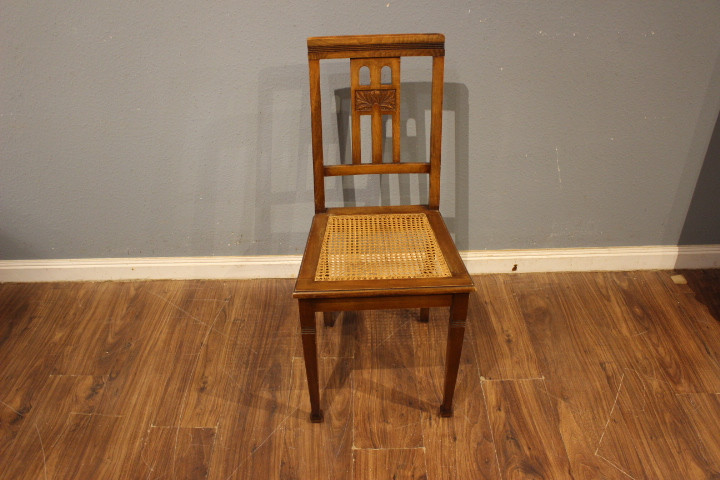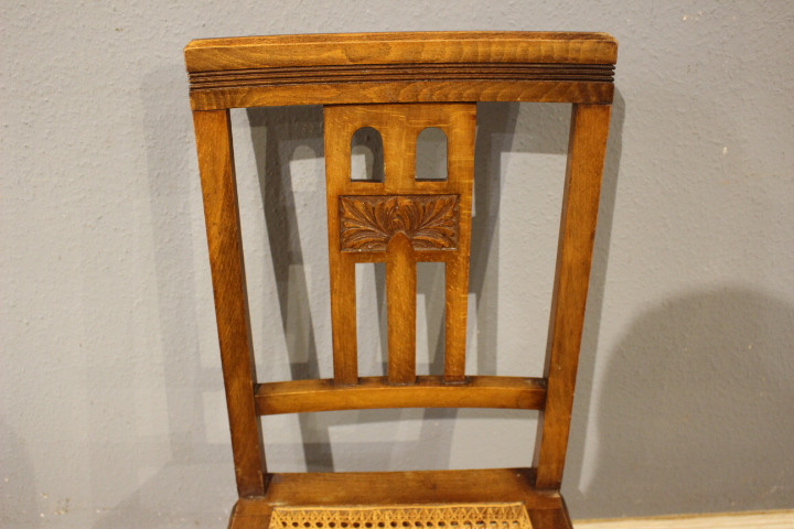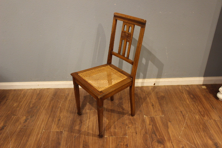 Schöne Eßzimmerstühle aus Eichenholz. Das Geflecht muss teilweise erneuert werden.